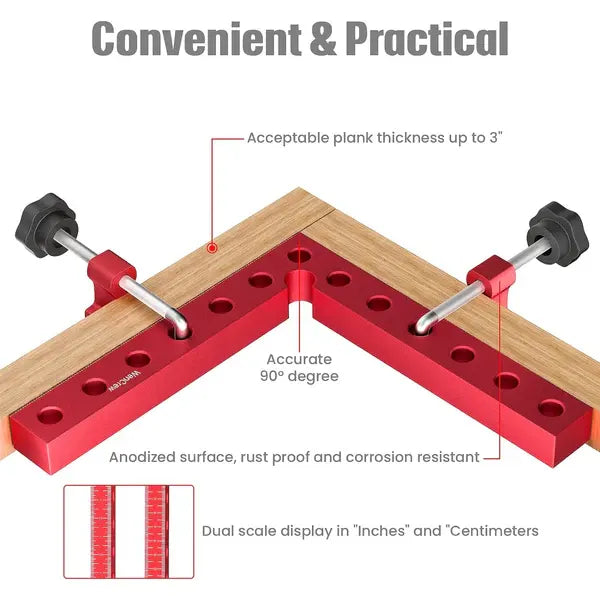 Keeps boards perfectly square during assembly. Ensures accurate corner joints for professional-looking results.