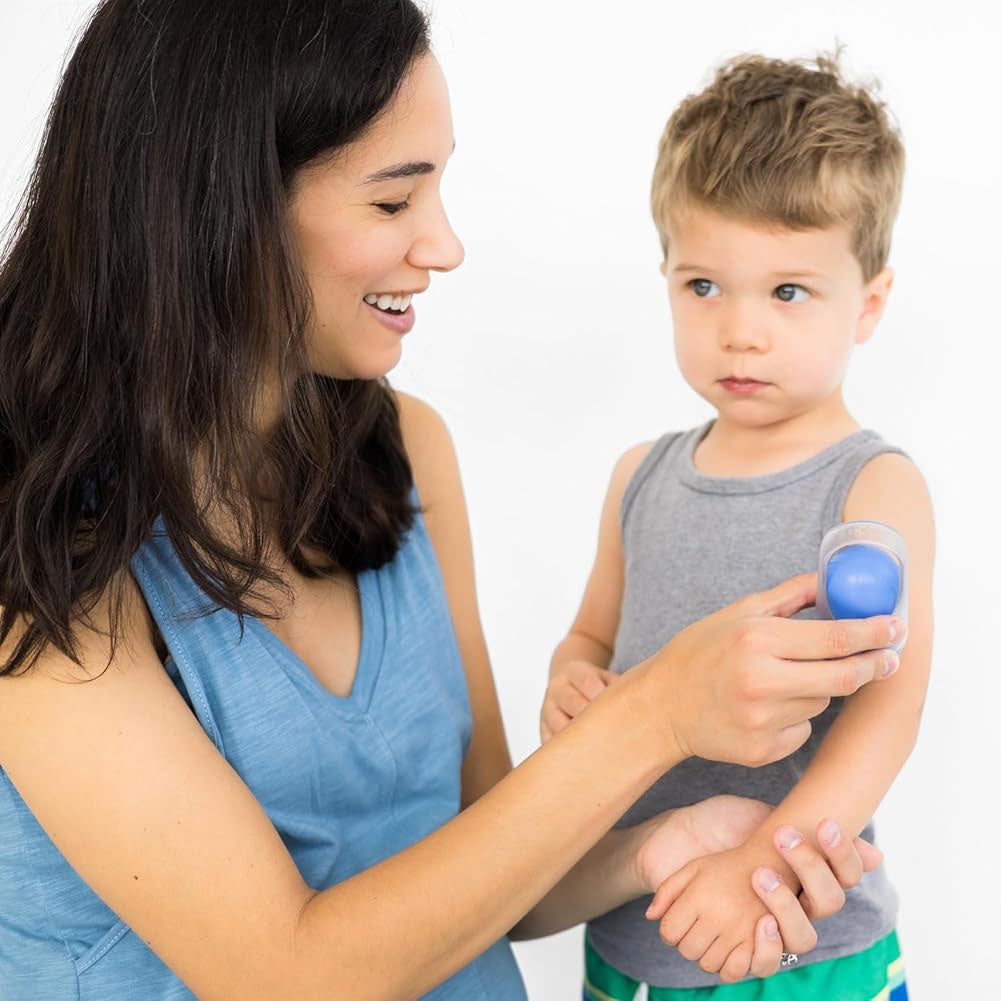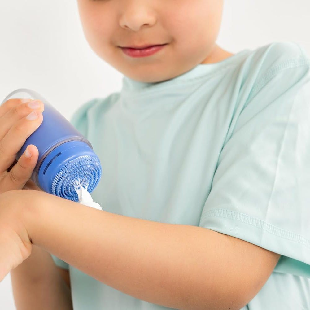 Designed for kids to apply sunscreen independently, this soft-touch silicone bristle applicator spreads sunscreen evenly without fuss or mess.