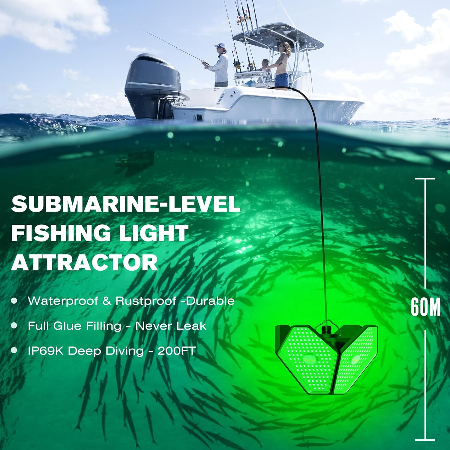 ✨ Light up the water and attract more fish with powerful underwater performance!