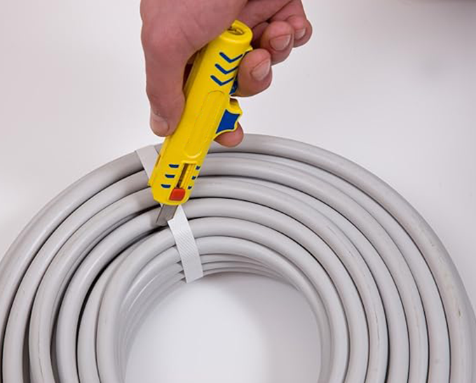 Ergonomic blade shape and edge geometry allow controlled, clean stripping of various cable types (coaxial, electrical, data cables) without damaging internal conductors.