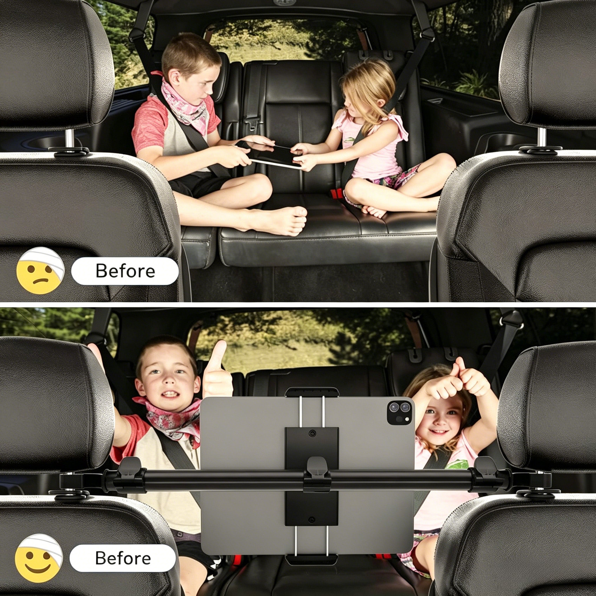 This adjustable car tablet holder enhances rear-seat entertainment with flexible viewing angles and stable device support.
