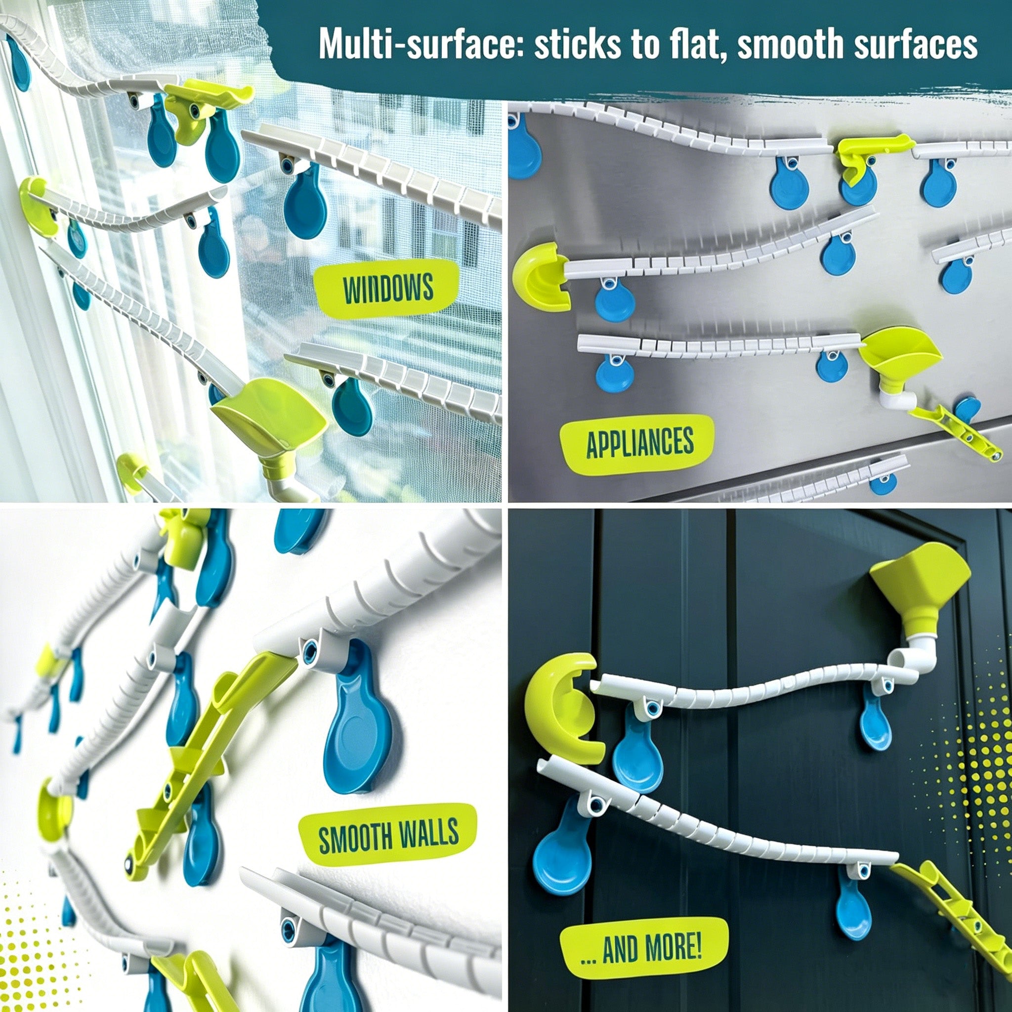 This gecko marble track starter kit is an innovative building system that lets you create vertical marble runs on smooth surfaces for fun and educational play.