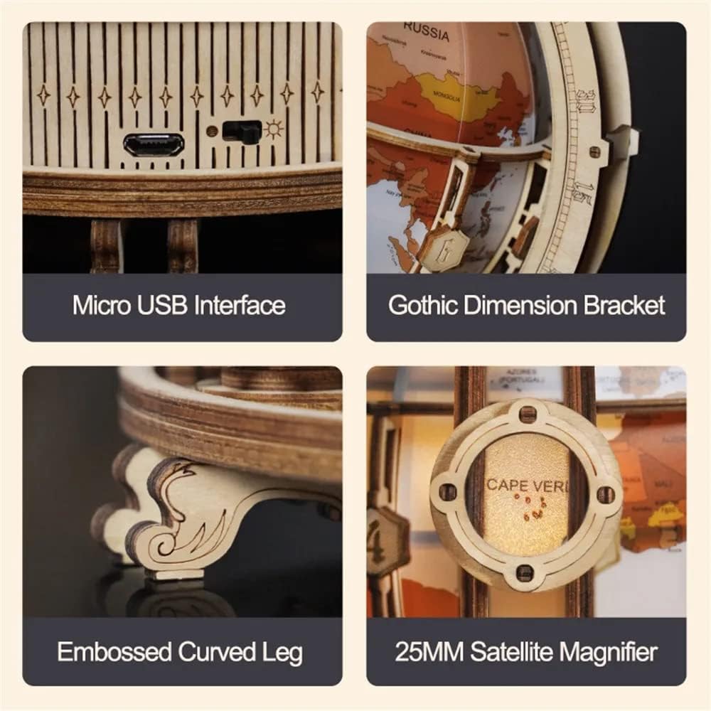 • Product Name: 3D Wooden LED Light-Up Globe Model Kit