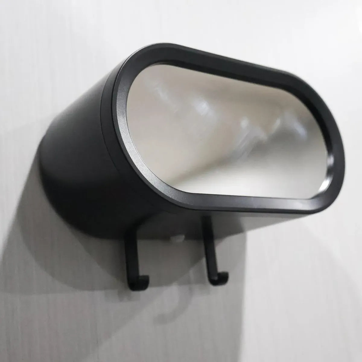 Sleek glossy mirror surface with wall-mounted bracket blends seamlessly with home decor while adding a contemporary touch.