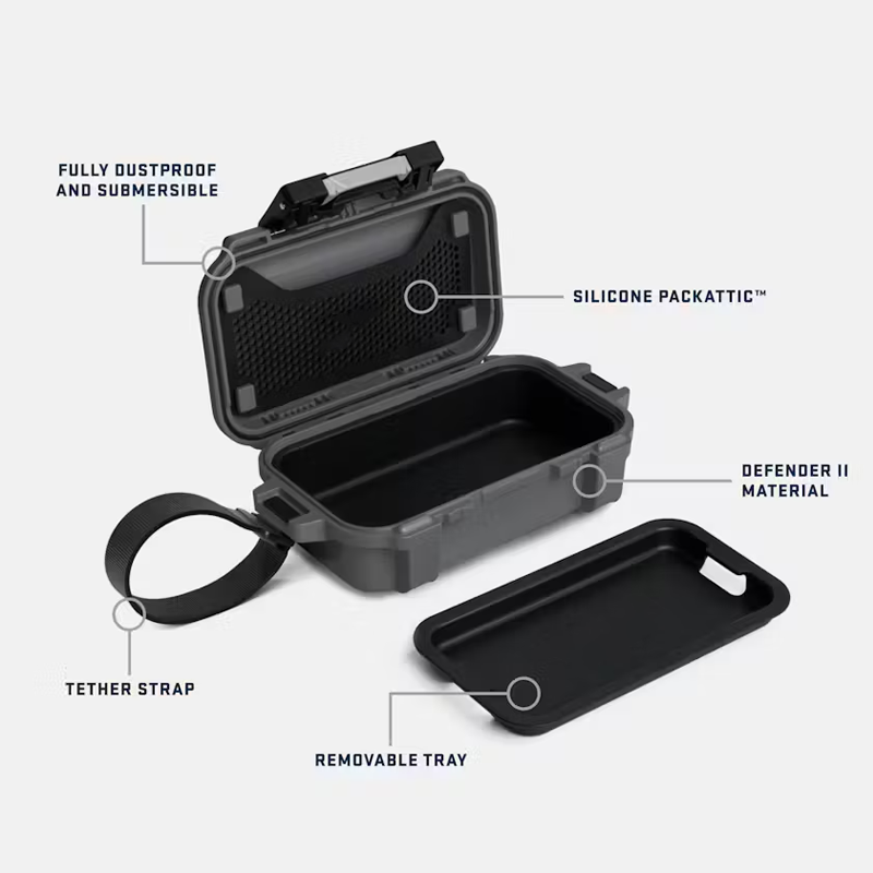 Dustproof and waterproof gearbox designed for organized storage with removable tray and silicone bag.