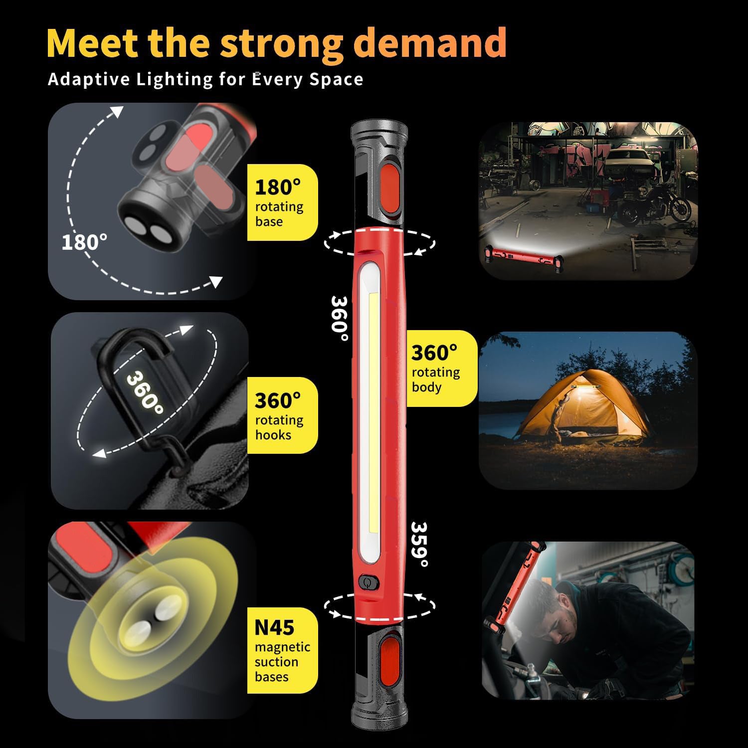 🧲 Magnetic Light Bar with 360° Main Light & 180° Legs