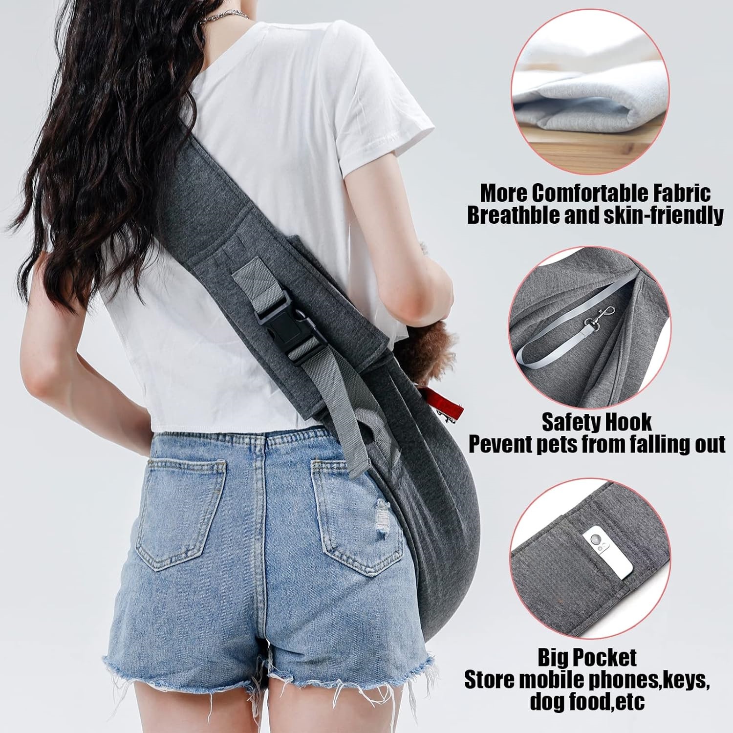 🔒 Dual Safety Protection – Features an adjustable safety hook that attaches to your pet's collar, plus two secure buttons at the opening to prevent slips or falls.