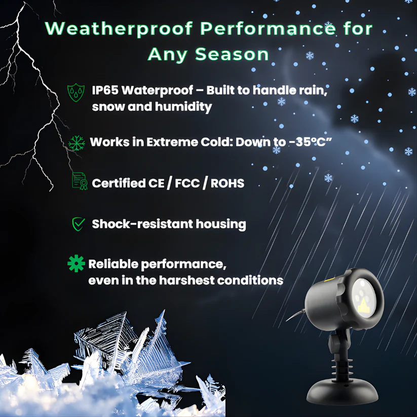 Instantly transform your home into a dazzling winter wonderland with this powerful 3D laser projector. It projects vibrant, moving holiday scenes—such as falling snowflakes, dancing reindeer, and Santa Claus—across your yard, roof, or walls with no setup hassle. Energy-efficient and built for outdoor use, it creates a stunning, professional-grade light show that will light up your neighborhood.
