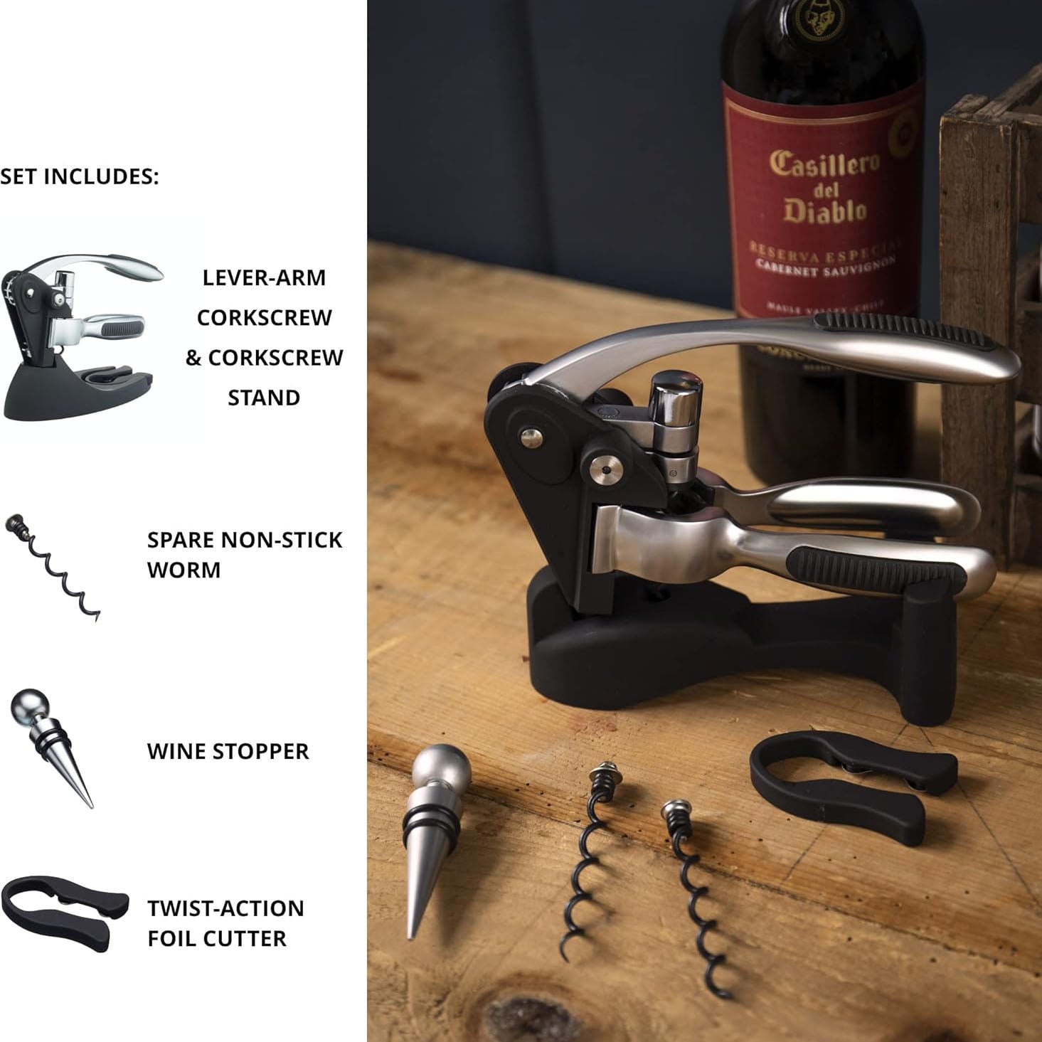 Lever Corkscrew Set – Includes Corkscrew, Stopper, Display Stand, Foil Cutter & Spare Worm Lever Corkscrew Set – Includes Corkscrew, Stopper, Display Stand, Foil Cutter & Spare Worm Lever Corkscrew Set – Includes Corkscrew, Stopper, Display Stand, Foil Cutter & Spare Worm Lever Corkscrew Set – Includes Corkscrew, Stopper, Display Stand, Foil Cutter & Spare Worm Lever Corkscrew Set – Includes Corkscrew, Stopper, Display Stand, Foil Cutter & Spare Worm