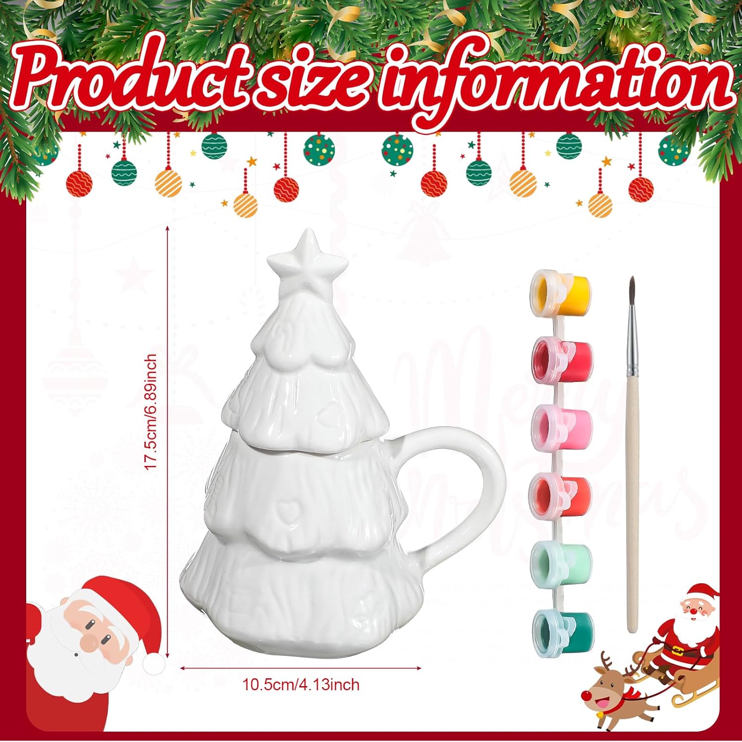 The mug features a charming Christmas tree shape, with hand-painted details that enhance the holiday spirit. Using multiple colors and glazes, the mug is fired to a glossy finish, making it a beautiful and eye-catching piece.