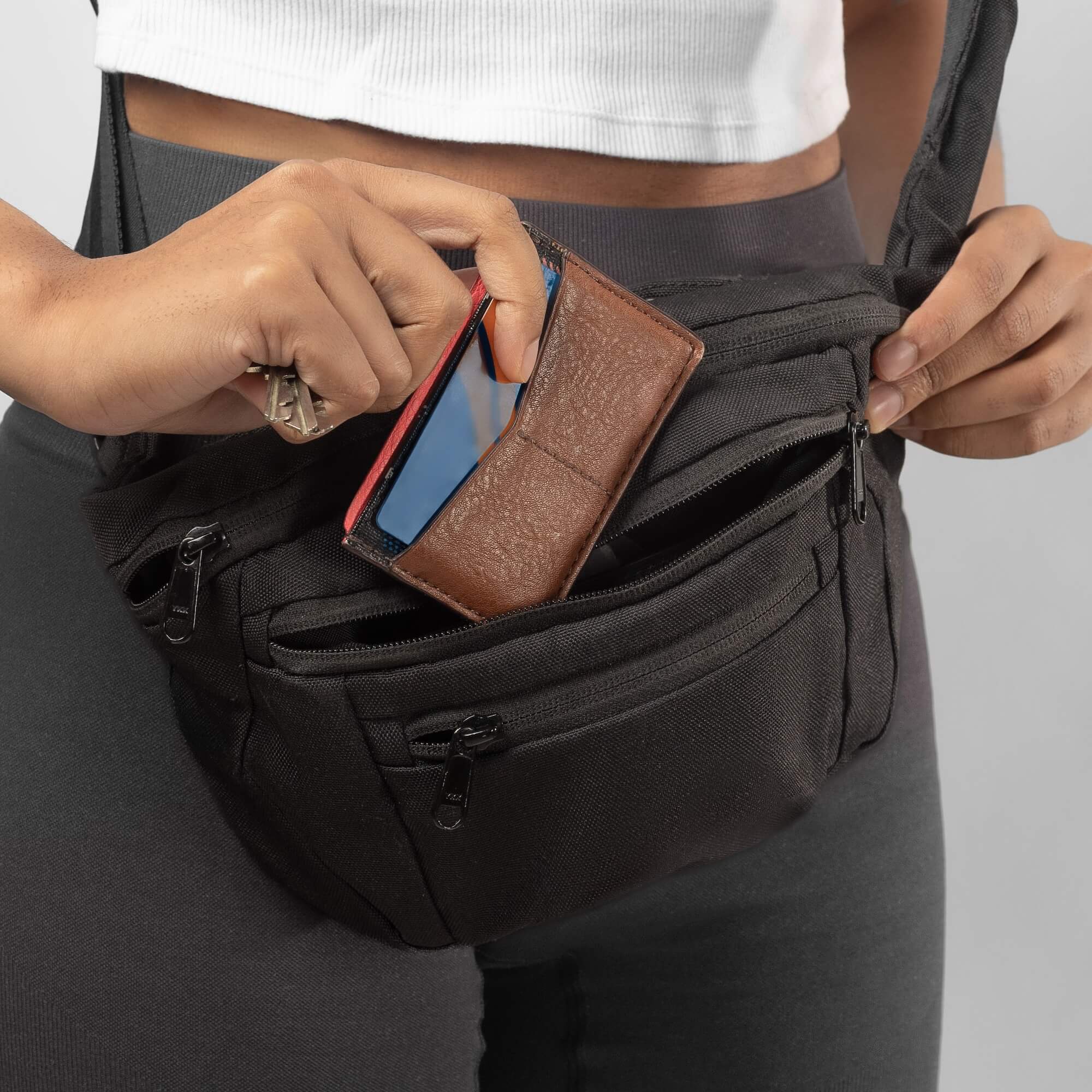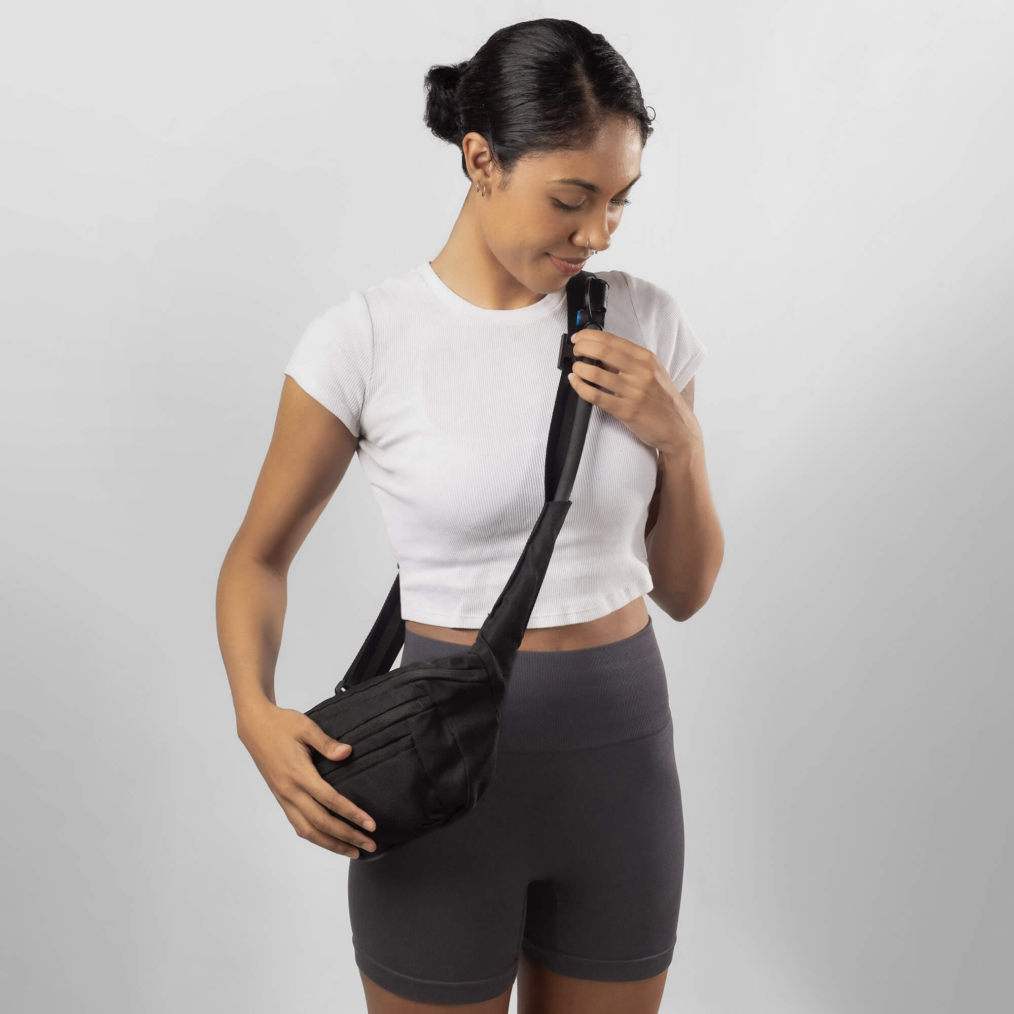 A sleek and functional waist pack featuring a built-in hydration bladder — designed to keep your essentials organized and water within reach for active lifestyles.