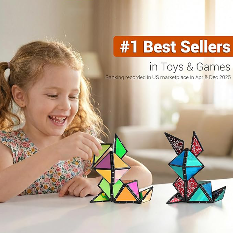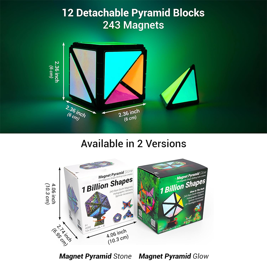 Magnetic pyramid cube designed for creative transformation into countless shapes while promoting STEM learning.