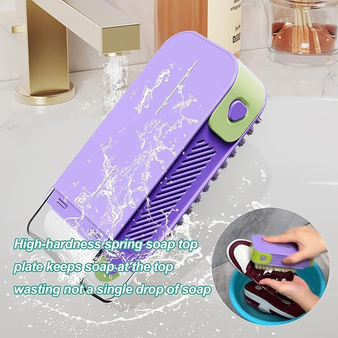 Integrated brush and soap storage compartment with ventilation holes ensures quick drying and maintains soap freshness.