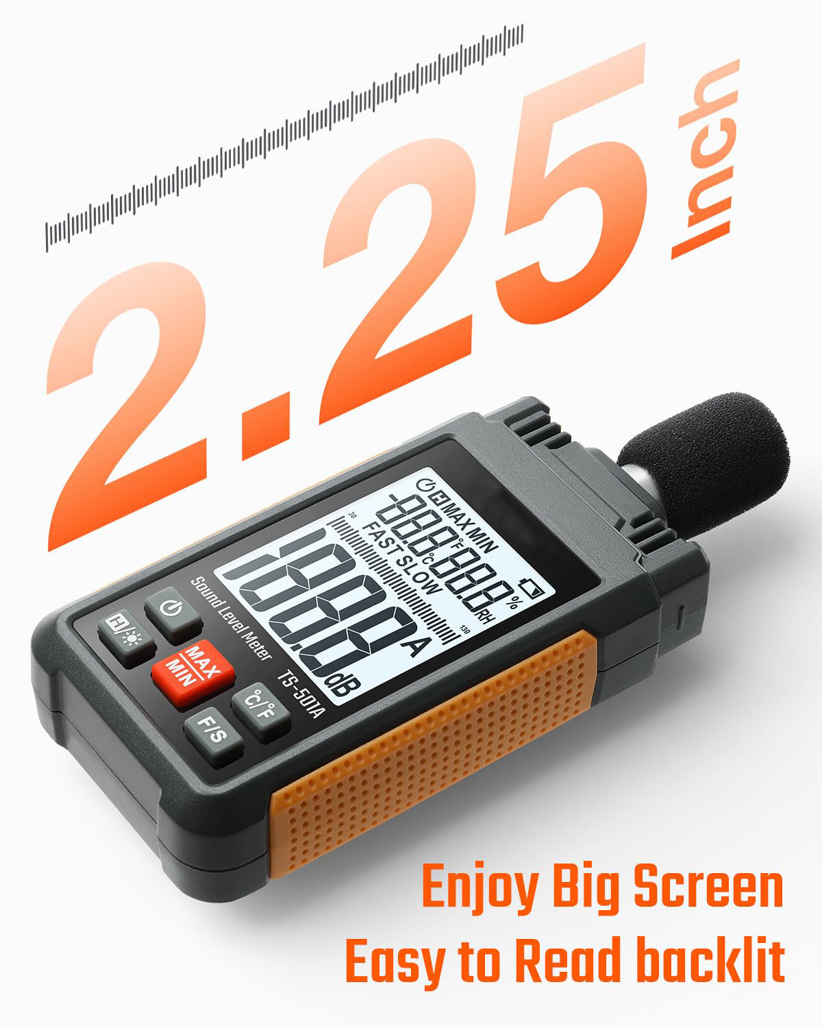 Decibel Meter – 2.25 Inch Backlit LCD Display, Portable Sound Pressure Level (SPL) Tester with A-weighting Function