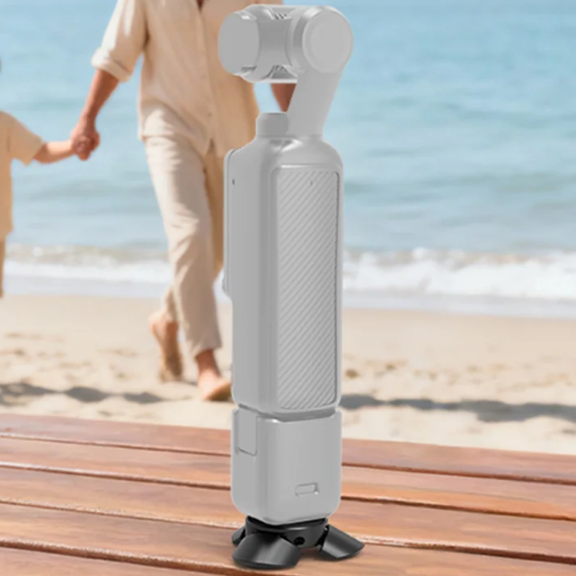 This mini tripod is specially designed for DJI Osmo Pocket 3, featuring a quick switch between portrait and handheld modes. By securing the Pocket 3 with a 1/4-inch screw, placing it on the base will unfold it into a mini tripod for portrait shooting. Simply lift the tripod to fold it back into handheld mode, providing a flexible shooting experience.