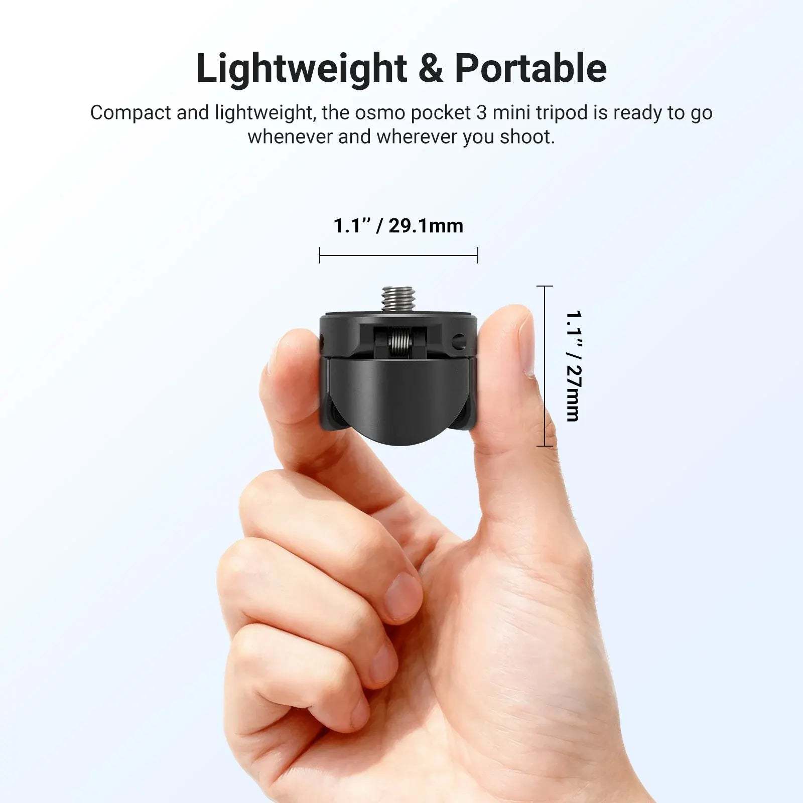 The mini tripod is designed to be compact and lightweight, easy to carry, and provides stable support for your shoots anytime, anywhere, without adding extra burden.