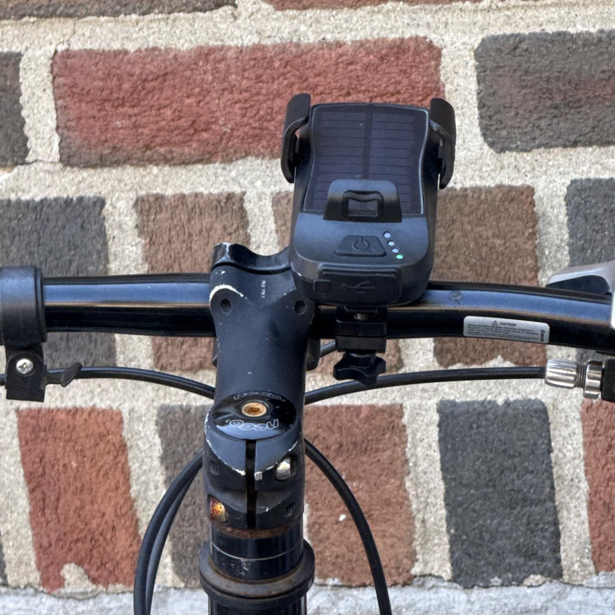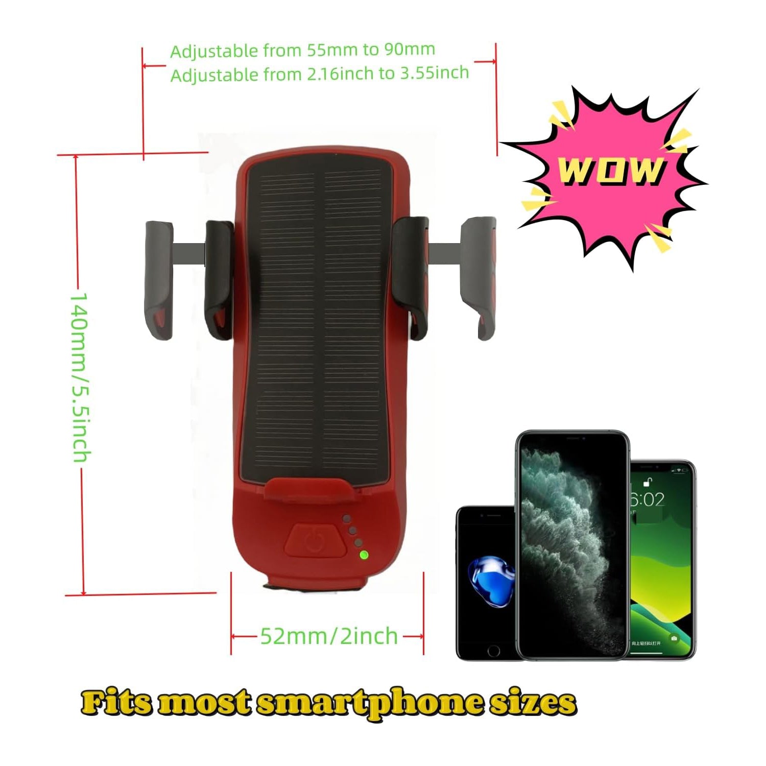 Light, charge, honk, hold—one device, endless possibilities! ✨ This 5-in-1 bike companion features a solar-powered headlight, 130dB safety horn, adjustable phone holder, 4000mAh power bank, and built-in speaker. Fits most smartphones (50-90mm). Ultra-bright with 3 light modes. USB rechargeable + solar. Ride safer, smarter, and fully charged!